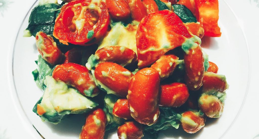 This is one of those dishes people will eat and say “If everything tasted like this I’d be vegan too!” It’s a crowd pleaser and a very satisfying salad that makes a great side dish for pasta with red sauce or quinoa. 3 servings. 10 min prep time. 1 ripe avocado sliced into small chunks 1 15 oz. can of red beans (rinsed) or 1 and 3/4 cups of cooked red beans juice from half of a lime 1 dash of salt 1 cup of raw spinach chopped 1/4 cup of finely chopped green onions 1/2 cup of diced tomatoes Combine the avocado, … Continue reading Creamy Avocado, Red Bean and Spinach Salad